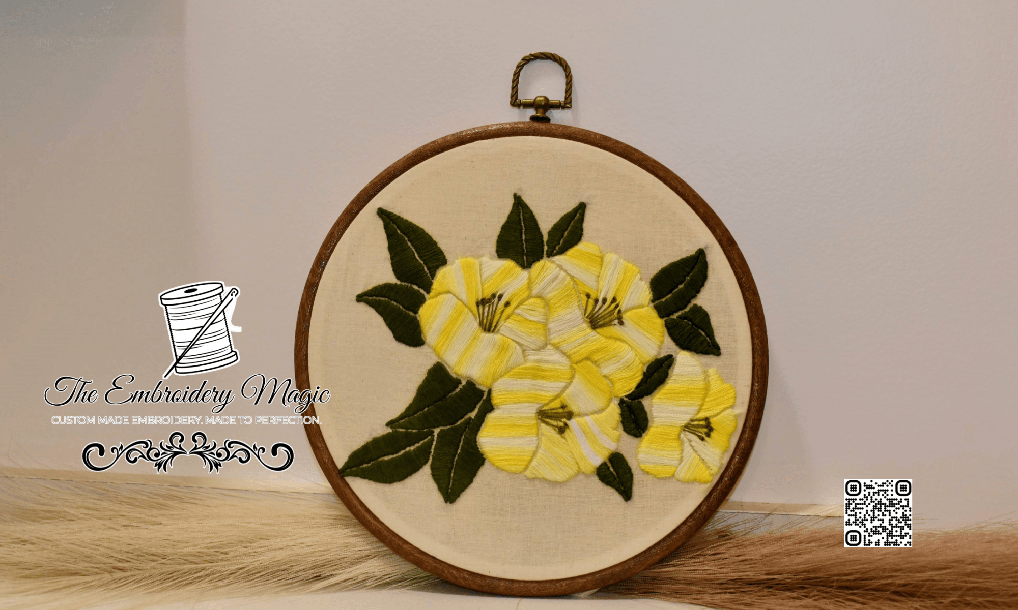 Hand made embroidery from a home-based business. A nature art with beautiful flowers arranged in a circle. Can be used an excellent gift on all occasions and can be used as a Wall-hanging art piece or a Table decor. The Embroidery is available in a Premium circular embroidery hoop.Select from a range of customization options …